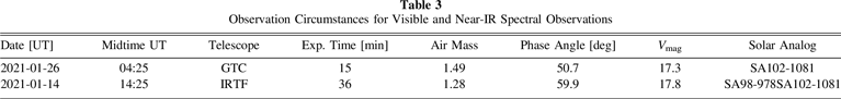 Table 3. Observation Circumstances for Visible and Near-IR Spectral Observations