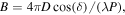 where δ is the subradar latitude, λ is the wavelength of the observations, and P is the rotation period. For a sphere, D is the diameter, but for an irregularly shaped asteroid, D is the pole-on breadth on the plane of the sky at the time of the observations. For an elongated asteroid, the bandwidth can vary considerably as the asteroid rotates. If an estimate of the rotation period is available, then measurements of the bandwidth place lower bounds on the pole-on breadth if the pole direction is unknown and direct estimates on the dimensions if the pole is available.