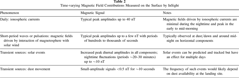 Table 2. Time-varying Magnetic Field Contributions Measured on the Surface by InSight