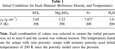 Table 1. Initial Conditions for Each Material (Reference Density and Temperature)