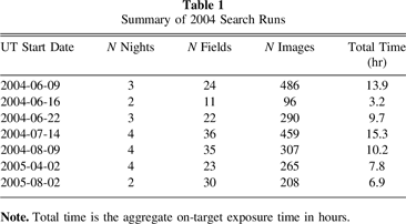 Table 1. Summary of 2004 Search Runs